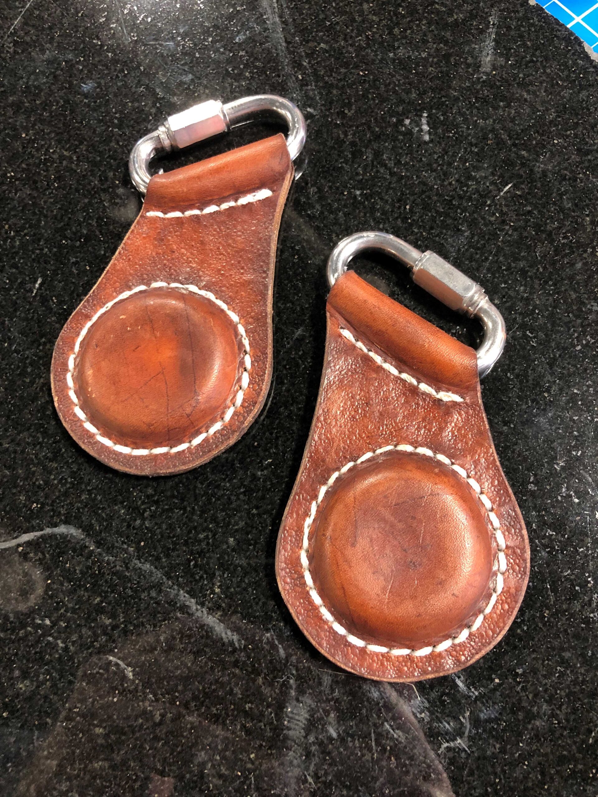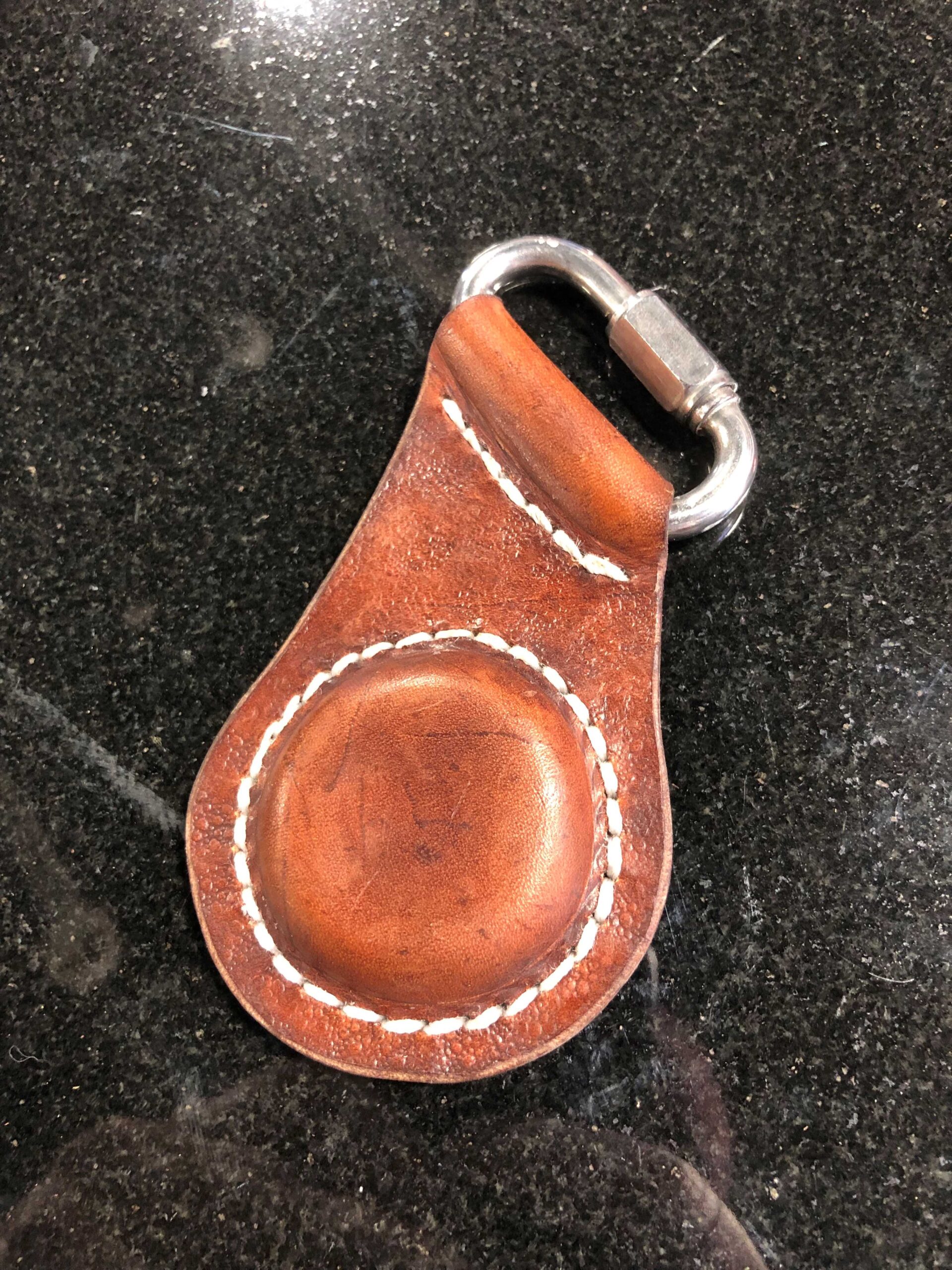 Made from veg tan leather, wax sealed, lead weight (approx.4oz.) and Stainless Steel Split Link for multi attachment.